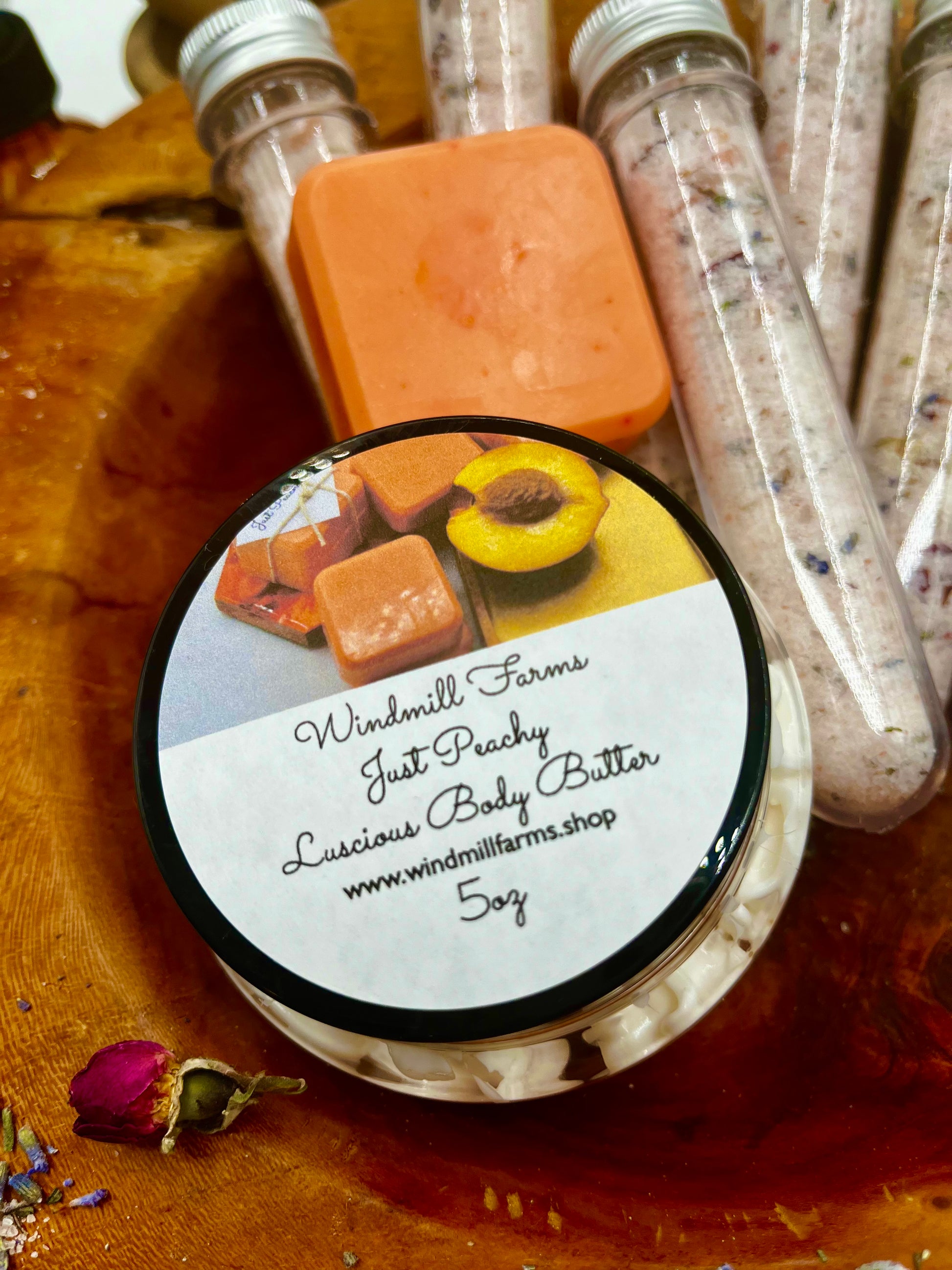 Indulge your senses with our luxury body products, handmade in small batches with natural ingredients and fragrant essential oils. Our goat milk soap is rich in vitamins and minerals that nourish and moisturize your skin, while our body butter is whipped to a creamy texture that melts into your skin, leaving it soft and smooth. Both products are infused with peach essential oils, which have a sweet and refreshing aroma that uplifts your mood and soothes your mind. Treat yourself or someone special to our luxury body products and enjoy the benefits of natural beauty. This is a beautiful summer scent.